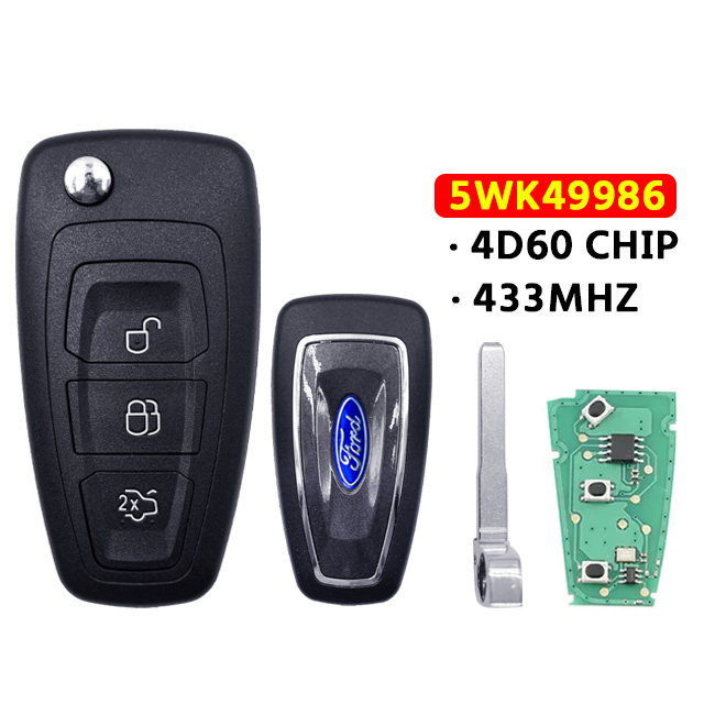 3 Buttons ASK Remote Key for Ford C-Max Focus Fiesta Mondeo 4D63 or 4D60 Chip 433Mhz Smart Flip Car Key