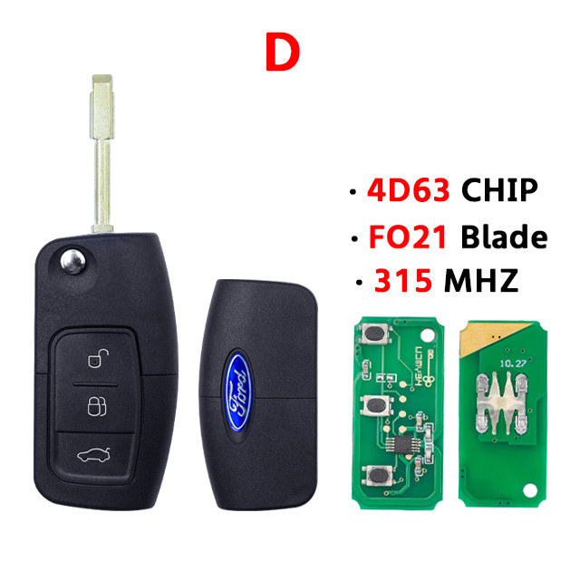 3 Buttons Remote Key for Ford Mondeo Focus Fiesta C-Max S-Max Galaxy Smart Car Key 4D60 or 4D63 Chip 315/433Mhz